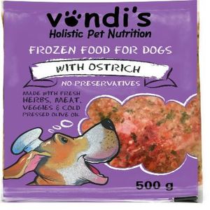 Vondis Ostrich Raw Food for Dogs (500g) |