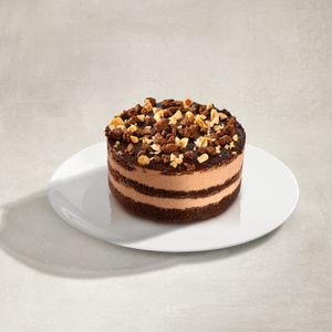 Chateau GateauxChocolate cake layered with a rich hazelnut praline and chocolate flavoured mousse, topped with dark chocolate flavoured ganache, roasted hazelnuts and chocolate biscuit crumble.