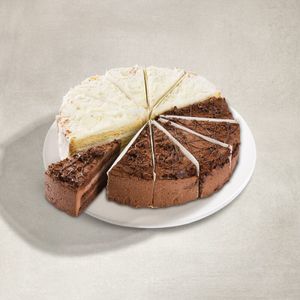 Chateau Gateaux6 Slices of Chocolate Nostalgia - Chocolate cake layered with rich chocolate flavoured mousse, topped with biscuit crumble and dark chocolate flavoured ganache. 6 Slices of Vanilla Dream - Moist torte layered with vanilla infused Chantilly cream, topped with fine white chocolate flavoured shavings.