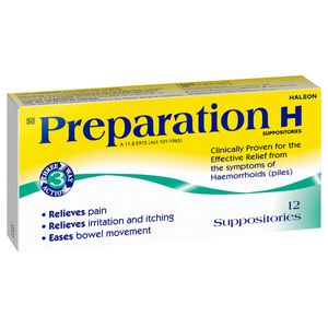 Dis-ChemRelief of symptoms of haemorrhoids i.e. pain, irritation and itching. Specifications Dosage and directions for use: Adults: Remove the wrapping from one suppository and insert as far as possible into the rectum, rounded end first. Insert one suppository in the morning, one at night and one after each bowel movement for relief. Ingredients Each suppository contains: Yeast Cell Extract 23mg, Shark Liver Oil 69mg.