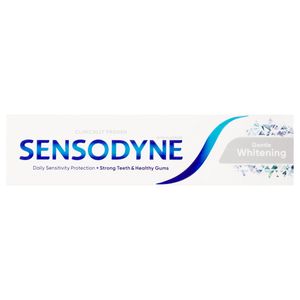 Dis-ChemSensodyne Gentle White is a specially designed low-abrasion fluoride toothpaste that works to gently yet effectively remove stains from your teeth, helping to restore their natural whiteness. Regular use, brushing twice daily, supports healthy gums and contributes to strong, white teeth. This toothpaste also helps remove plaque build-up and contains fluoride for cavity protection. Instructions: Brush twice a day and not more than three times, minimise swallowing and spit out. If irritation occurs, discontinue use. Talk to your dentist or doctor as soon as possible if you experience swelling of the mouth or face. Sensitive teeth may indicate an underlying problem that needs prompt care, if symptoms persist or worsen see your dentist. Specifications Product Type: Fluoride Toothpaste Product Variant: Gentle Whitening Pack Configuration: Each Packaging Type: Tube Recyclable: Yes Unit Of Size: 75 Unit Of Measure: millilitre (ml) Features And Benefits: Long lasting care for sensitive teeth, Helps remove plaque build-up, Contains fluoride to protect against cavities, Helps maintain healthy gums, Helps remove stains for whiter teeth, Cavity protection Storage Instructions: Store in a cool, dry place Ingredients Aqua, Hydrated Silica, Sorbitol, Glycerin, Pentasodium Triphosphate, Potassium Nitrate, PEG-6, Alumina, Aroma, Titanium Dioxide, Sodium Methyl Cocoyl Taurate, Cocamidopropyl Betaine, Xanthan Gum, Sodium Hydroxide, Sodium Saccharin, Sodium Fluoride