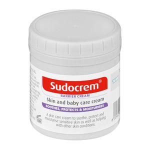Dis-ChemSudocrem Skin and Baby Care Barrier Cream 125g. Soothe,protects and moisturises sensitive skin, coming to the aid of various skin ailments. Contains an emollient that soothes sore skin, provides cooling properties that help ease pain and irritation Provides a water-repellent base that forms a protective barrier, helping to stop any irritants (urine and faeces) coming into contact with the skin. Sudocrem is a gentle, yet effective cream, it reduces the risk of infection and helps to soothe discomfort of minor cuts and moderate burns.