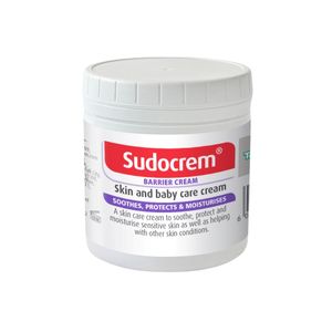 Dis-ChemSudocrem Skin and Baby Care Barrier Cream 250g. Soothe,protects and moisturises sensitive skin, coming to the aid of various skin ailments. Contains an emollient that soothes sore skin, provides cooling properties that help ease pain and irritation Provides a water-repellent base that forms a protective barrier, helping to stop any irritants (urine and faeces) coming into contact with the skin. Sudocrem is a gentle, yet effective cream, it reduces the risk of infection and helps to soothe discomfort of minor cuts and moderate burns.