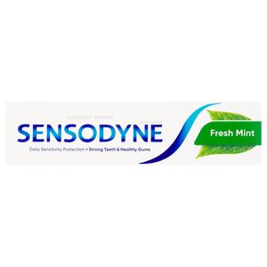 Dis-ChemSensodyne Toothpaste Fresh Mint 75ml is clinically proven to provide quick and effective relief for sensitive teeth. It functions by creating a protective barrier over the tooth surface while you brush, which helps to minimise sensitivity. This formulation offers daily protection against sensitivity, contributes to stronger teeth, and maintains healthy gums. Specifications Clinically Proven With Fluoride Daily Sensitivity Protection Strong Teeth Healthy Gums Ingredients Aqua, Sorbitol, Hydrated Silica, Glycerin, Potassium Nitrate, Cocamidopropyl Betaine, Aroma, Xanthan Gum, Titanium Dioxide, Sodium Fluoride, Sodium Saccharin, Sodium Hydroxide, Sucralose, Limonene