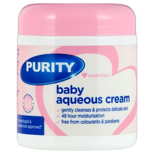 Dis-ChemPurity & Elizabeth Anne's Essentials Baby Aqueous Cream 450ml gently moisturises and helps protect your baby's skin from dryness. Consultant dermatologist and paediatrician approved to give you the softest care. Ingredients Paraffinum Liquidum (Mineral Oil), Isopropyl Myristate, Ethylhexyl Stearate, Rose Flower Oil, Fragrance, Benzyl Alcohol, Benzyl Benzoate, Benzyl Salicylate, Citronellol, Coumarin, Geraniol, Limonene, Linalool, Alpha-Isomethyl Ionone.