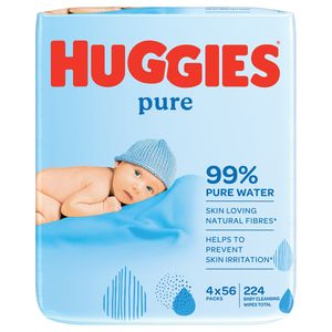 Dis-ChemHuggies Pure Baby Wipes provide a pure and gentle cleansing experience for your baby. Formulated with 99% pure water and containing 70% natural fibres (wood pulp), these wipes are designed to clean effectively while being kind to delicate skin. They are fragrance-free and dermatologically tested, making them suitable for newborns and sensitive skin. The wipes feature a unique three-layer cotton-like material that is thick, soft, and fast-absorbing for efficient cleaning. For added durability and to prevent tearing, they contain 30% plastic. These hypoallergenic wipes are multi-purpose, perfect for diaper changes, cleaning hands and faces, or quick clean-ups on the go. For optimal skin protection, consider pairing these wipes with Huggies Extra Care nappies. Instructions: Do not flush in toilet. Store in a cool dry place. Specifications Primary Gtin: 5029053550121 Pack Configuration: Inner Pack Pack Quantity: 4 Product Width (Mm): 192 Product Depth (Mm): 100 Product Height (Mm): 216 Product Gross Weight (G): 1220 Brand: Huggies Product Type: Baby Cleansing Wipes Product Variant: Pure Unit Of Size: 56 Unit Of Measure: Pack (pk) Packaging Type: Bag Features And Benefits: 99% Pure Water, Skin loving natural fibres, Helps prevent skin irritation, Clinically Tested, Allergy Certified, Safe for bottoms, hands and faces, Contains up to 50% less plastic vs leading competitors Fragrance Free: Yes Hypoallergenic: Yes Additional Claim 1: Alcohol Free, Dermatologist Tested Ingredients Aqua, Caprylyl Glycol, Sodium Benzoate, Coco-Betaine, Polysorbate 20, Malic Acid, Sodium Citrate
