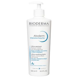 Dis-ChemBIODERMA Atoderm Intensive Baume is an intensive soothing and nourishing cream specifically formulated for itchy, irritated, and eczema-prone skin. It works to soothe and reduce the urge to scratch while intensely nourishing and restoring lipids to the skin. The formula has very good tolerance, a non-sticky, non-oily texture, and is instantly absorbed, making the skin more comfortable and strengthening the skin barrier in a lasting way. It can be applied once or twice a day to cleansed skin. Instructions: Once or twice a day. Apply to cleansed skin. The 3.6.9 method is a new method to systemize application. It has been developed in order to indicate the right dose of Atoderm Intensive baume to use, and then to create a routine and systematize application of the cream for better results in the long term and for a better observance. STEP 1: 3 pumps for a BABY: 1 pump for face, neck and chest - 1 pump for both arms and back - 1 pump for both legs. STEP 2: 6 pumps for a CHILD: - 1 pump for face and neck - 1 pump for chest - 1 pump for back - 1 pump for both arms - 1 pump per leg (x2). STEP 3: 9 pumps for an ADULT: - 1 pump for face and neck - 1 pump for chest - 1 pump for back - 1 pump per arm (x2) - 2 pumps per leg (x2). Specifications Brand: BIODERMA Product Type: Intensive Baume Unit Of Size: 500 Unit Of Measure: millilitre (ml) Packaging Type: Bottle Packaging Material: Plastic Recyclable: Yes Features And Benefits: Soothes And Reduces The Urge To Scratch, Intensely Nourishes And Restores Lipids, Very Good Tolerance, Non-Sticky, Non-Oily Texture, Instant Absorption, Makes The Skin More Comfortable, Strengthens The Skin Barrier In A Lasting Way Application Area: Face, Body Skin Concern: Dryness Fragrance Free: Yes Product Width (mm): 70 Product Height (mm): 210 Product Gross Weight (g): 552.2 Country Of Origin: France Storage Instructions: Store In A Cool, Dry Place Ingredients Aqua/Water/Eau, Glycerin, Paraffinum Liquidum / Mineral Oil / Huile Minerale, Helianthus Annuus (Sunflower) Seed Oil, Behenyl Alcohol, Sucrose Stearate, Canola / Canola Oil / Huile De Colza, Hydroxyethyl Acrylate/Sodium Acryloyldimethyl Taurate Copolymer, Pentylene Glycol, Betasitosterol, Xylitol, Zinc Gluconate, Acrylates/C10-30 Alkyl Acrylate Crosspolymer, Palmitamide Mea, 1,2-Hexanediol, Caprylyl Glycol, Disodium Edta, Sodium Hydroxide, Rhamnose, Sodium Lauroyl Lactylate, Polysorbate 60, Sorbitan Isostearate, Tocopherol, Phytosphingosine, Ceramide Np, Mannitol, Ethylhexylglycerin, Ceramide Ap, Cholesterol, Carbomer, Xanthan Gum, Citric Acid, Ceramide Eop