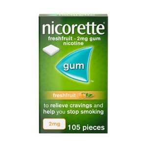 Dis-ChemNICORETTE Freshfruit Gum allows you to actively control how much nicotine you use and when you use it, as well as is for the relief of withdrawal symptoms. With its patented coated technology, NICORETTE Freshfruit Gum. Each piece of gum delivers a controlled amount of nicotine into your body enough to satisfy the craving, but not as much as real cigarette. NICORETTE Freshfruit Gum comes two strengths â 2mg and 4 mg. If you smoke 20 cigarettes or fewer a day, then use the 2mg strength. NICORETTE has the right products to help you beat cravings and quit smoking. Specifications For adults. Chew one piece when you feel the urge to smoke - most people use between 8 and 12 pieces a day. Nicorette Chewing Technique: 1. Chew slowly until taste becomes strong. 2. Rest between gum and cheek. 3. Chew again until taste has faded. Ingredients Each piece contains 10 mg nicotine-resin complex 20%, equivalent to 2 mg nicotine.