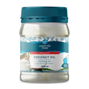 Dis-ChemCoconut oil is a stable cooking oil due to its resistance to oxidation and polymerisation at high temperatures. Unlike other oils, which can produce harmful aldehydes when heated, Lifestyle Food Odourless Coconut Oil 400ml's high saturated fat content makes it a safer option for frying. This is because saturated fats are more stable at high temperatures than mono- and polyunsaturated fats. This odourless variant ensures a neutral taste in your culinary creations. Specifications Volume: 400ml Ideal for: Frying & baking Dietary: Vegan Taste: Neutral taste Pack size: 400ml Exclusive brands: Yes Kosher: Yes Nutrients: Coconut oil Ingredients Coconut oil