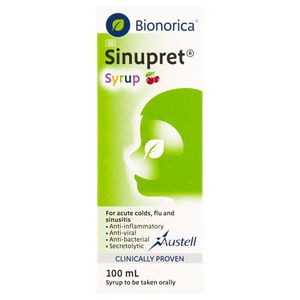 Dis-ChemTo combat symptoms due to acute inflammation of the paranasal sinuses. Specifications Children aged 2 to 5: take 2,1 ml 3 times daily Children aged 6 to 11: take 3,5 ml 3 times daily Adults and adolescents from the age of 12: 7 ml 3 times daily Ingredients Each 10 g (8,33 ml) contains extract (drug/extract ratio:1: 11) from gentian root, verbena herb, common sorrel herb, elder flowers, primula flower with calyx (1:3:3:3:3) and extracting agent: ethanol 59% (v/v). Also contains liquid maltitol and 8% (v/v) alcohol.