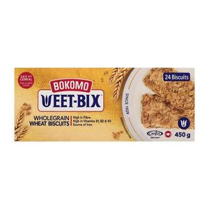 Wholegrain wheat biscuitsHigh in fibreHigh in vitamins B1, B2 & B3Source of iron | Bokomo Weet-Bix Cereal 450G