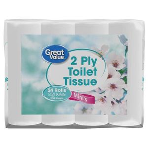 24 rollsSoft white 200 sheets | Great Value Toilet Paper 2 Ply Minis 24's, White