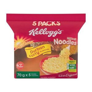 Presenting the delicious range of Kellogg’s Instant Noodles with the goodness of grains, great taste and high in energy. It is fortified with essential B vitamins which keeps you 'Active' and 'Alert' throughout the day. A convenient and easy meal to prepare, it can be consumed at any time of the day. Kellogg’s Instant Noodles can help you feel energized and leave a sensational taste on the pallet. It is available in Chicken, Beef, Cheese, Durban Curry & Vegetable Curry. Taste the Difference with Kellogg's Instant Noodles! | Kellogg's Noodles 70G X5 Durban Curry 70 G