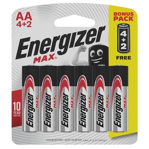 Max AA 4+2 Pack AlkalineFeatures and BenefitsProtects your devices from damaging leaksHolds power up to 10 years in storageCan withstand a wide temperature range, from -30 degrees Celsius to 60 degrees CelsiusSpecificationsWidth: 15. 4mmHeight: 99mmDepth: 111. 5mm | Energizer Max Aa 4+2 Pack Alkaline