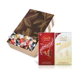 Lindt1 x Pick & Mix 700g 1 x Lindor Milk Singles 100g 1 x Lindor White Singles 100g 1 x Cocoa Gift Box