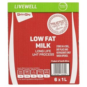 PnP Live Well Low Fat Long Life Milk 6 x 1L