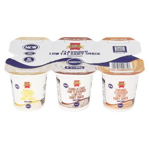 First Choice Low Fat Vanilla, Vanilla & Choc Chip & Caramel Flavoured Dairy Snack Yoghurt 6 x 100g
