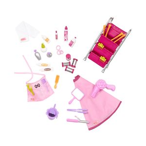 Toy KingdomCreative curls and cool coiffeur start with the Our Generation Berry Nice Salon Set a 47-piece salon accessory set for 46cm dolls! This salon set for dolls has everything you need to give your dolls exciting new hairstyles – the only limit is your imagination! Because there has never been a generation of girls quite like us. We’re sisters cousins and best friends. We support animal shelters by washing cars we reach for the stars and we are having a ton of fun along the way. This is our time. This is our story. Salon Accessories for 46cm Dolls Going to the salon just got more exciting! This salon accessory set for dolls is the perfect addition to any doll beauty parlor. Protect your dolls with the pink cape to catch any spills. The hair stylist can wear the tool apron to keep supplies within easy reach. Use the 3-tiered supply cart to hold onto the array of hair clips curl rollers hair dye strips and other salon accessories – there are so many of them! Just remember – the best kind of styling is imaginary! (Please remember to keep your dolls away from real styling products real heat and water to avoid damage.) With a little imagination there’s no limit to how many cool hair-dos you can design!.