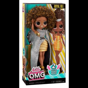 Toy KingdomThe original fan-favourite L.O.L. Surprise O.M.G. fashion dolls are back in all-new glamorous fashions and beautiful hairstyles: say hello to Royal Bee the big sister to adorable character Queen Bee! Royal Bee is the tastemaker of her crew she is here to bring you all things fashionable and fabulous! Unbox multiple surprises including transforming fashions and fabulous accessories from diamond sunglasses to trendy hoop earrings to showcase her royally glam style! Dress Royal Bee in her dazzling silver dress with two charming black belts! Discover the additional surprise with Royal Bee's fashions by removing her silver dress to reveal her shining gold bodysuit and skirt instantly transforming her outfit to a whole different look! This re-release of Royal Bee showcases her stunning features styled hair her own elegant outfit and comes articulated for tons of posing opportunities.