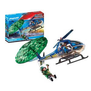 Toy KingdomFor Exciting Chases In The Air! The Gangster Parachute Is Thrown Into The Air And Floats Gently Down. The Police Helicopter Takes Up The Chase. This Police Operation Is A High-Profile Operation. The Crook Wants To Escape With A Parachute. But He Did His Calculations Without The Clever Playmobil Police Officer In His Helicopter. While The Thief Slowly Glides To The Ground The Policeman From The Cockpit Of The Helicopter Always Keeps An Eye On Him. When He Lands He Is Already Expected. The Next Trip Goes To Prison. The Playset Contains Two Playmobil Figures Policeman And Criminal A Police Helicopter A Parachute And Many Other Extras For Exciting Air Chases. Throw Parachute And Figure Into The Air And Watch It Float To The Ground. What's In The Box: - Figures: 1 Policeman 1 Villain - Accessories: 1 Police Helicopter 1 Parachute 2 Helmets 1 Gun 1 Holster Box Dimensions: 38.5X28.4X9.4Cm Product Dimensions: 31.0X11.5X13.5Cm Recommended Age: 4+