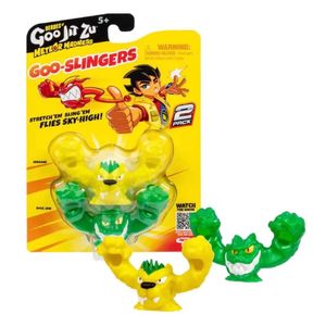 Toy KingdomGet ready for explosive high-flying battles with the Heroes of Goo Jit Zu Meteor Madness Goo Slingers 2 Pack! These super-stretchy mini fighters are built for maximum launch power and epic action play. Each Goo Slinger can be stretched pulled back and released to soar through the air. Their squishy goo-filled bodies snap back into shape ready to sling again and again. Perfect for competitive battles target challenges or combining with the Meteor Madness Mega Launcher for even bigger action. Each 2 Pack includes two unique characters from the Meteor Madness series making them ideal for instant battles collecting and trading. Compact durable and packed with personality these slingable heroes are built for fast-paced fun.
