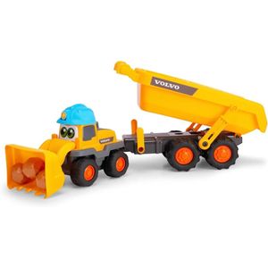 Toy KingdomThe loader features a movable front scoop that allows children to collect and transport the included play rocks while the tilting dump trailer lets them unload materials just like a real construction vehicle. The set also includes fun sound effects bringing the construction site to life and making playtime even more exciting. Built with rounded edges durable materials and chunky components the Tracey Trailer is perfectly sized for small hands and safe for young children. The colourful design and friendly vehicle face help encourage imaginative play while supporting the development of motor skills and hand-eye coordination. With its interactive features and realistic Volvo styling the ABC Tracey Trailer construction set provides hours of fun for young construction fans who love digging loading and transporting their materials.