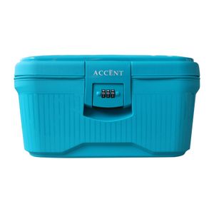 MakroIntroducing the Accent Polypropylene Lock Vanity Case Teal; your essential companion for keeping toiletries and cosmetics organized on your travels. Keep your essentials safe and stylish with the Accent Polypropylene Lock Vanity Case Teal.Key features:This versatile case boasts internal elastic straps designed to secure bottlesA convenient lining pocket for easy access to smaller itemsAdded convenience of a tray and mirror for on-the-go touch-ups