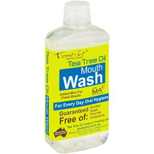 Dis-ChemTreet-It Mouth Wash is a natural anti-bacterial and anti-fungal mouth wash. It is free of alcohol, sugar, fluoride and colourants. Mint is added for extra freshness. Due to the nature of the formulation it is cloudy.Treet-It Mouth Wash is excellent both for daily oral hygiene after brushing (to prevent the growth of bacteria that leads to bad breath and tooth decay), as well as for the prevention and treatment of mouth ulcers and mouth thrush. Specifications Brush teeth and rinse. Rinse the mouth with one to two capfuls once or twice per day. Gargle if necessary. Do not swallow unless directed to do so by your dentist, doctor or pharmacist. Ingredients Purified Water, Sorbitol, Glycerine, PEG-40 Hydrogenated Castor Oil, Pharmaceutical Grade Tea Tree Oil, Mint Essential Oil, Preservative Free