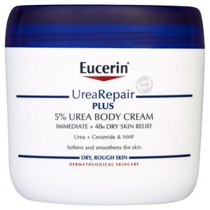 Dis-ChemEucerin UreaRepair PLUS 5% Urea Body Cream contains urea, ceramide, and other natural moisturising factors (NMFs). It has been clinically proven to deliver both immediate relief and intense, long-lasting moisturisation for dry and very dry skin. This soft and pleasant cream strengthens the skin's natural barrier, making it soft, smooth and resilient to dryness for up to 48 hours. It absorbs quickly and easily without leaving a greasy residue and is colourant-free. It is suitable for sensitive skin conditions like psoriasis and diabetes, improving skin texture and resilience. Instructions: Apply as frequently as required. Specifications Pack Configuration: Each Product Width (mm): 98 Product Depth (mm): 95 Product Height (mm): 94 Product Gross Weight (g): 521 Brand: Eucerin Product Type: 5% Urea Body Cream Unit Of Size: 450 Unit Of Measure: millilitre Recyclable: Yes Packaging Type: Tub Fragrance Free: Yes Store Below: 25C Shelf Life/Sell By: 12 months Country Of Origin: Poland Ingredients Aqua, Glycerin, Cetearyl Alcohol, Urea, Hydrogenated Coco-Glycerides, Caprylic/Capric Triglyceride, Octyldodecanol, Butyrospermum Parkii Butter, Sodium Lactate, Glyceryl Stearate SE, Ceramide NP, Lactic Acid, Arginine HCL, Sodium PCA, Cholesterol, Helianthus Annuus Seed Oil, Alanine, Carnitine, Glycine, Sodium Chloride, Dimethicone, Tapioca Starch, Chondrus Crispus Extract, Sodium Cetearyl Sulfate, Acrylates/C10-30 Alkyl Acrylate Crosspolymer, Decylene Glycol, Phenoxyethanol, Pentylene Glycol